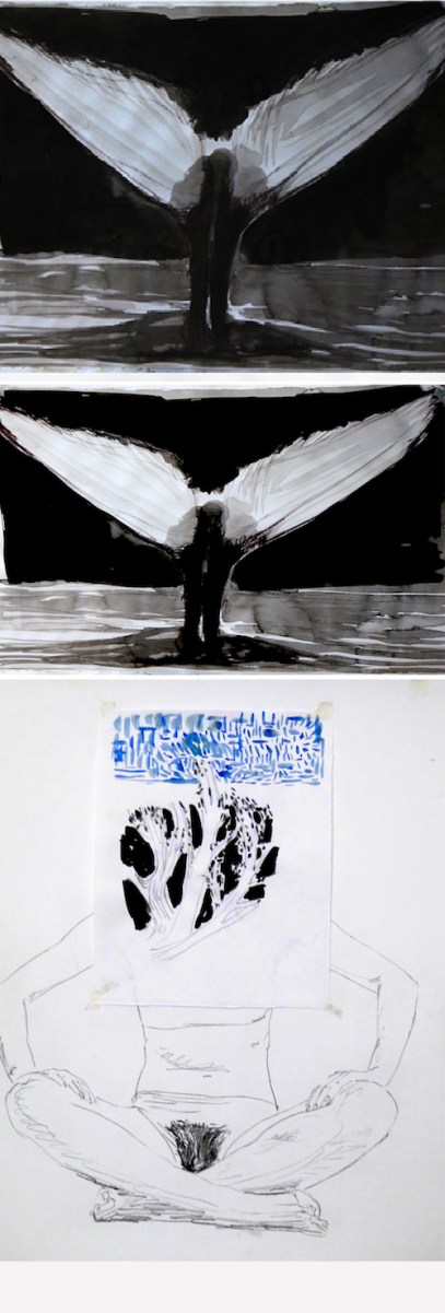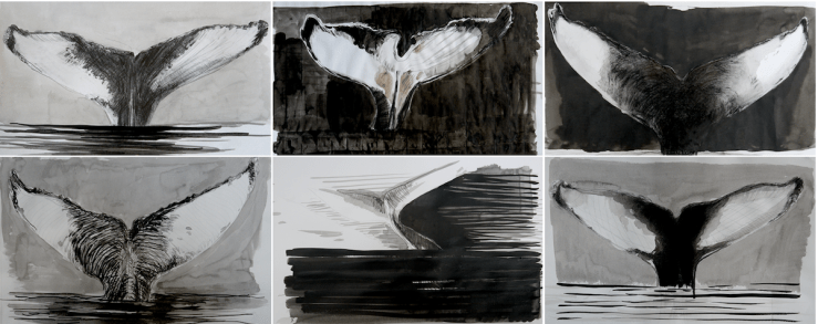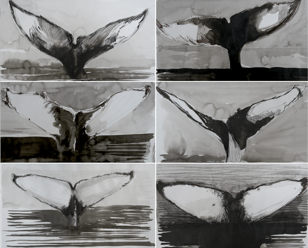 1 Nageoires caudales baleine à bosse, (fiches d’identification baleine à bosse, Pacifique nord, usa) 2013, lavis 20x30cm