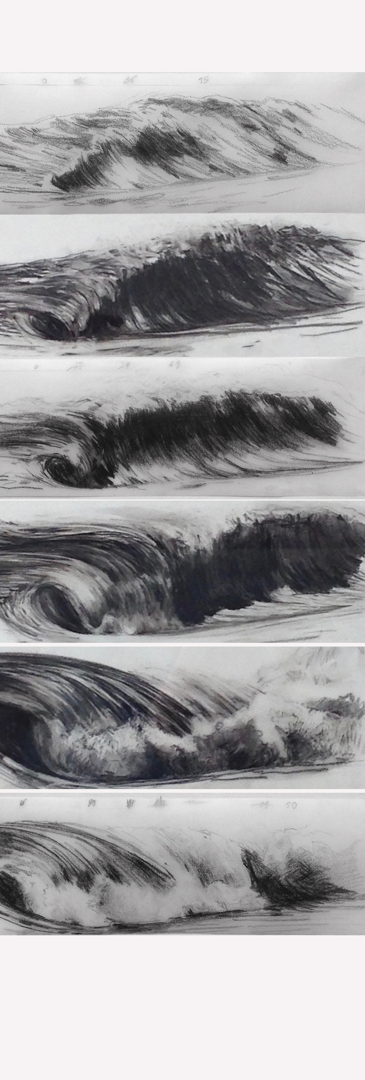 1 Vagues, 2015, série de fusains sur papier / collection privée