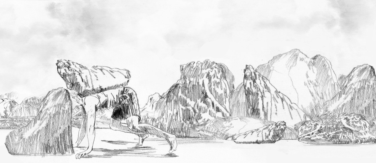 2 Devenir rocher, 2019 graphite sur papier, 80×20 cm
