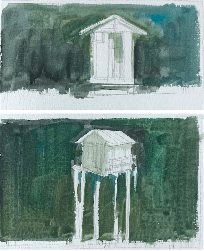 Cabanes / Séries 2022, Dessins et gouaches petits formats